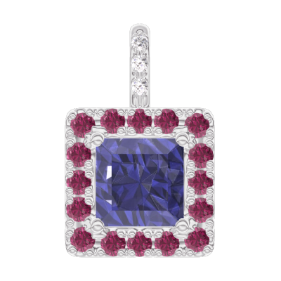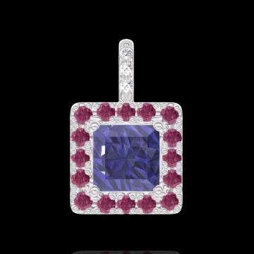 « L'ATELIER » Nº206151Anhänger Weißgold 750/-(18Kt) - Blauer Saphir Prinzess 0.3 Karat - Halo Rubin - Fassung Diamant - Keine Kette