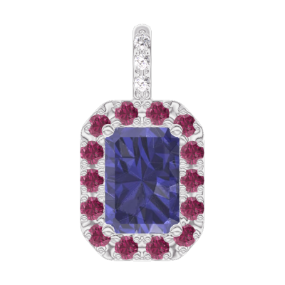 « L'ATELIER » Nº206344Anhänger Weißgold 375/-(9Kt) - Blauer Saphir Rechteckig 0.3 Karat - Halo Rubin - Fassung Diamant - Keine Kette