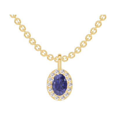 « L'ATELIER » Nº206497Anhänger Gelbgold 750/-(18Kt) - Blauer Saphir Oval 0.3 Karat - Halo Diamant - Kette Ankerkette