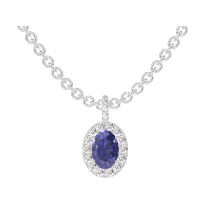 « L'ATELIER » NR. 206503Anhänger Weißgold 750/-(18Kt) - Blauer Saphir Oval 0.3 Karat - Halo Diamant - Fassung Diamant - Kette Ankerkette