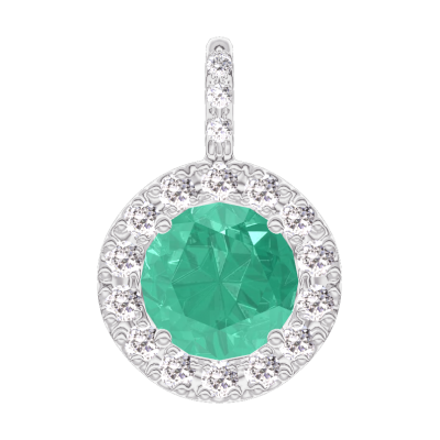 « L'ATELIER » NR. 207064Anhänger Weißgold 375/-(9Kt) - Smaragd rund 0.3 Karat - Halo Diamant - Fassung Diamant - Keine Kette 4 (3)