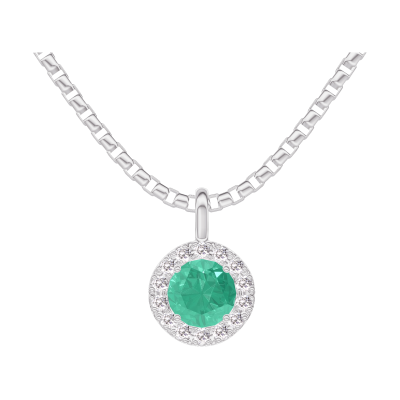 « L'ATELIER » Nº207092Anhänger Weißgold 375/-(9Kt) - Smaragd rund 0.3 Karat - Halo Diamant - Kette Venezianerkette 4 (3)