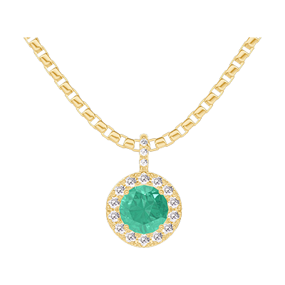 « L'ATELIER » NR. 207093Anhänger Gelbgold 750/-(18Kt) - Smaragd rund 0.3 Karat - Halo Diamant - Fassung Diamant - Kette Venezianerkette 4