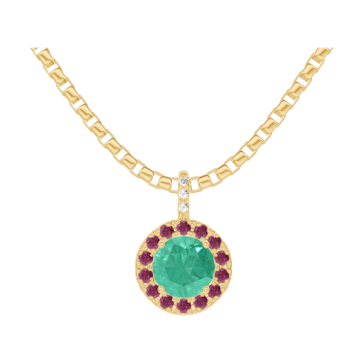 « L'ATELIER » Nº207142Anhänger Gelbgold 375/-(9Kt) - Smaragd rund 0.3 Karat - Halo Rubin - Fassung Diamant - Kette Venezianerkette 4