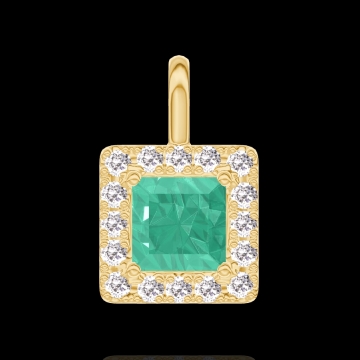 « L'ATELIER » Nº207249Anhänger Gelbgold 750/-(18Kt) - Smaragd Prinzess 0.3 Karat - Halo Diamant - Keine Kette