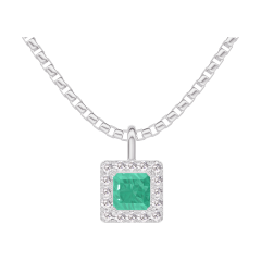 Anhänger Weißgold 750/-(18Kt) - Smaragd Prinzess 0.3 Karat - Halo Diamant - Kette Venezianerkette