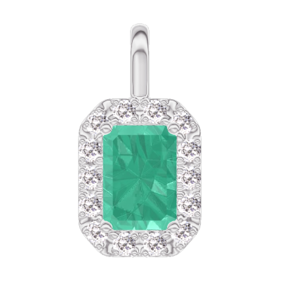 « L'ATELIER » NR. 207443Anhänger Weißgold 750/-(18Kt) - Smaragd Rechteckig 0.3 Karat - Halo Diamant - Keine Kette
