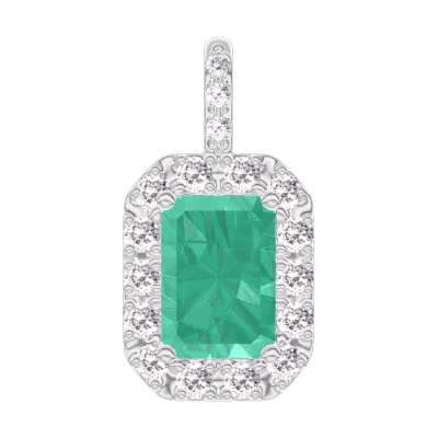 « L'ATELIER » NR. 207448Anhänger Weißgold 375/-(9Kt) - Smaragd Rechteckig 0.3 Karat - Halo Diamant - Fassung Diamant - Keine Kette