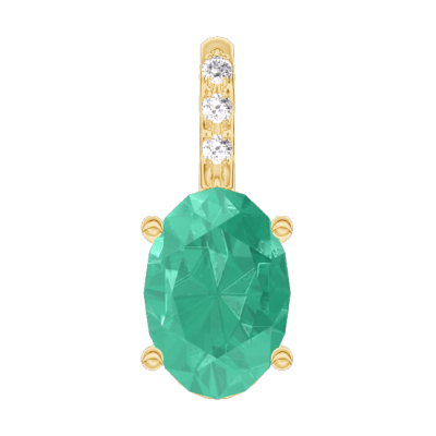 « L'ATELIER » Nº207590Anhänger Gelbgold 375/-(9Kt) - Smaragd Oval 0.3 Karat - Fassung Diamant - Keine Kette