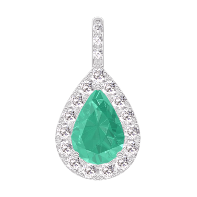 « L'ATELIER » NR. 207832Anhänger Weißgold 375/-(9Kt) - Smaragd Tropfen 0.3 Karat - Halo Diamant - Fassung Diamant - Keine Kette
