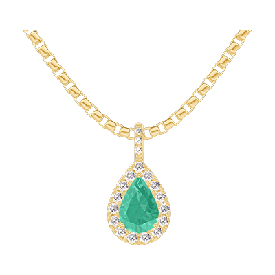 « L'ATELIER » Nº207861Anhänger Gelbgold 750/-(18Kt) - Smaragd Tropfen 0.3 Karat - Halo Diamant - Fassung Diamant - Kette Venezianerkette