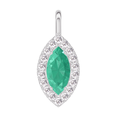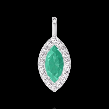 « L'ATELIER » NR. 208019Anhänger Weißgold 750/-(18Kt) - Smaragd Marquise 0.3 Karat - Halo Diamant - Keine Kette