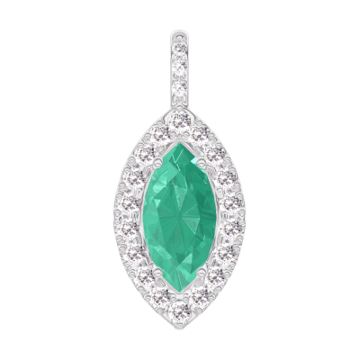 « L'ATELIER » NR. 208024Anhänger Weißgold 375/-(9Kt) - Smaragd Marquise 0.3 Karat - Halo Diamant - Fassung Diamant - Keine Kette