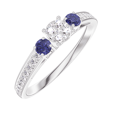 « L'ATELIER » NR. 209067Ring Weißgold 750/-(18Kt) - Pavé aus natürlichen Diamanten rund entsprechend 0.3 - Seitliche Steine Blauer Saphir - Fassung Diamant 4.5