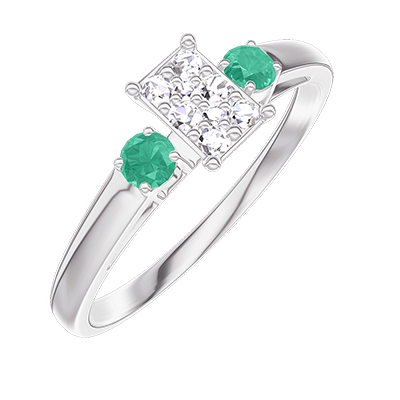 « L'ATELIER » Nº209284Ring Weißgold 375/-(9Kt) - Pavé aus natürlichen Diamanten Rechteckig entsprechend 0.3 - Seitliche Steine Smaragd
