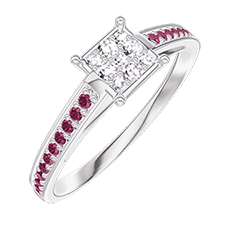 Ring Weißgold 375/-(9Kt) - Pavé aus natürlichen Diamanten Prinzess entsprechend 0.5 - Fassung Rubin