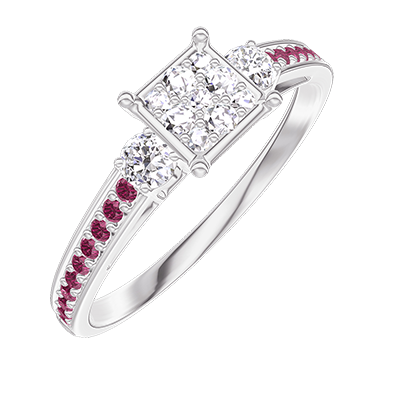 « L'ATELIER » Nº209732Ring Weißgold 375/-(9Kt) - Pavé aus natürlichen Diamanten Prinzess entsprechend 0.5 - Seitliche Steine Diamant - Fassung Rubin