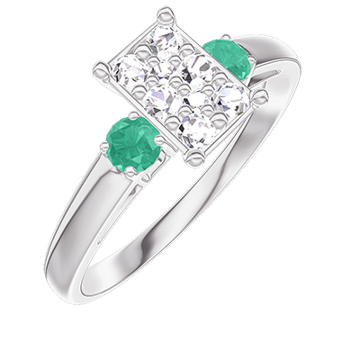 « L'ATELIER » Nº210484Ring Weißgold 375/-(9Kt) - Pavé aus natürlichen Diamanten Rechteckig entsprechend 0.7 - Seitliche Steine Smaragd