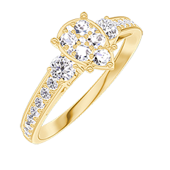 « L'ATELIER » NR. 210626Ring Gelbgold 375/-(9Kt) - Pavé aus natürlichen Diamanten Tropfen entsprechend 0.7 - Seitliche Steine Diamant - Fassung Diamant
