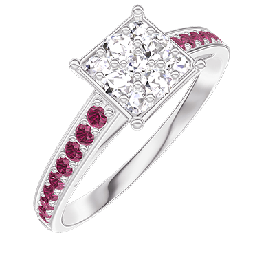 « L'ATELIER » Nº210912Ring Weißgold 375/-(9Kt) - Pavé aus natürlichen Diamanten Prinzess entsprechend 1 - Fassung Rubin