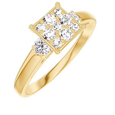 « L'ATELIER » NR. 210922Ring Gelbgold 375/-(9Kt) - Pavé aus natürlichen Diamanten Prinzess entsprechend 1 - Seitliche Steine Diamant