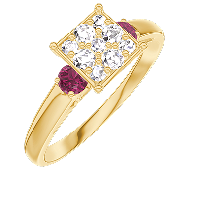 « L'ATELIER » NR. 210942Ring Gelbgold 375/-(9Kt) - Pavé aus natürlichen Diamanten Prinzess entsprechend 1 - Seitliche Steine Rubin