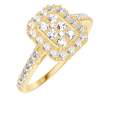 « L'ATELIER » NR. 211502Ring Gelbgold 375/-(9Kt) - Pavé aus natürlichen Diamanten Rechteckig entsprechend 0.5 - Halo Diamant - Fassung Diamant 4.7