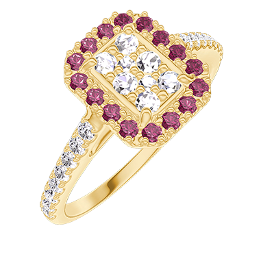 « L'ATELIER » Nº211517Ring Gelbgold 750/-(18Kt) - Pavé aus natürlichen Diamanten Rechteckig entsprechend 0.5 - Halo Rubin - Fassung Diamant 4.7