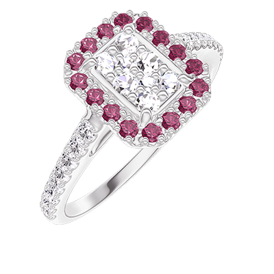 « L'ATELIER » Nº211520Ring Weißgold 375/-(9Kt) - Pavé aus natürlichen Diamanten Rechteckig entsprechend 0.5 - Halo Rubin - Fassung Diamant 4.7