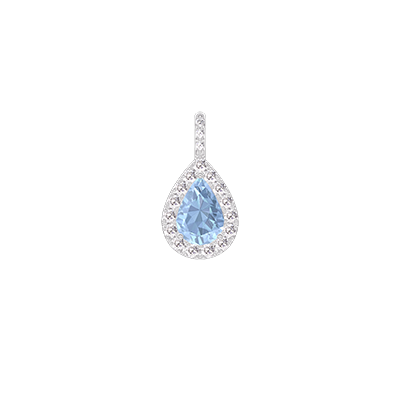 « L'ATELIER » NR. 212720Anhänger Weißgold 375/-(9Kt) - Blauer Topas Tropfen 0.3 Karat - Halo Diamant - Fassung Diamant - Keine Kette