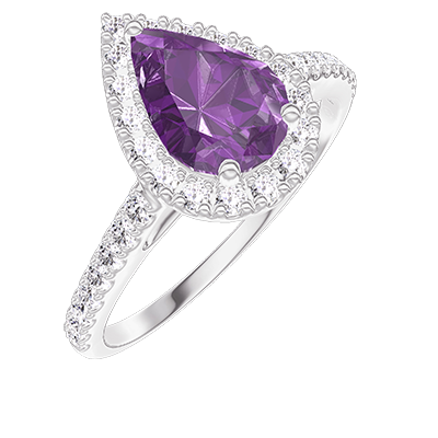 « L'ATELIER » NR. 218494Ring Weißgold 750/-(18Kt) - Amethyst Tropfen 0.5 Karat - Halo Diamant - Fassung Diamant 4.8