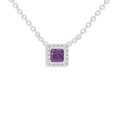« L'ATELIER » NR. 220172Collier Weißgold 375/-(9Kt) - Amethyst Prinzess 0.3 Karat - Halo Diamant - Kette Ankerkette