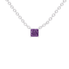 Collier Weißgold 375/-(9Kt) - Amethyst Prinzess 0.3 Karat - Kette Ankerkette
