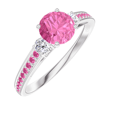 « L'ATELIER » NR. 312296Ring Weißgold 375/-(9Kt) - Rosa Saphir rund 0.5 Karat - Seitliche Steine Diamant - Fassung Rosa Saphir 4.5