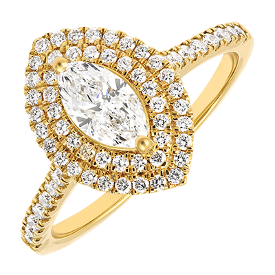 « L'ATELIER » Nº403464Ring Gelbgold 750/-(18Kt) - Diamant Marquise 0.5 Karat - Halo Diamant - Fassung Diamant