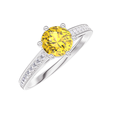 « L'ATELIER » Nº441253Ring Weißgold 750/-(18Kt) - Gelber Saphir rund 0.5 Karat - Fassung Diamant