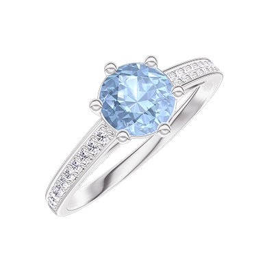 « L'ATELIER » Nº444852Ring Weißgold 375/-(9Kt) - Blauer Topas rund 0.5 Karat - Fassung Diamant
