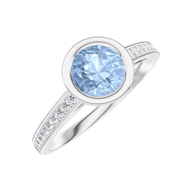 « L'ATELIER » NR. 603255Ring Weißgold 750/-(18Kt) - Blauer Topas rund 0.5 Karat - Fassung Diamant