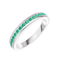 Trauring Weißgold 750/-(18Kt) - Vollkreis Schiene Smaragd 0.56 Karat