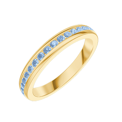 « L'ATELIER » NR. 800086Trauring Gelbgold 375/-(9Kt) - Vollkreis Schiene Blauer Topas 0.56 Karat