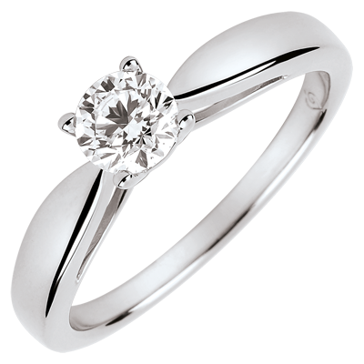 Die Zartheit eines fein geschliffenen Ringes, gekrönt durch einen Diamanten in Krappenfassung. 1 Diamant : 0.4 Karat - Weißgold (750/-): 2.7 g. Weitere Abmessungen