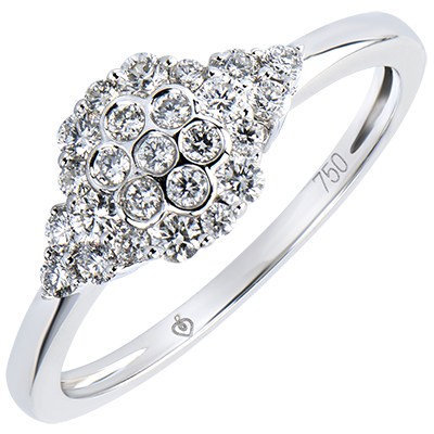 Solitär Ring Frische - Bienenschwarm - 18 Karat Weißgold und Diamanten
