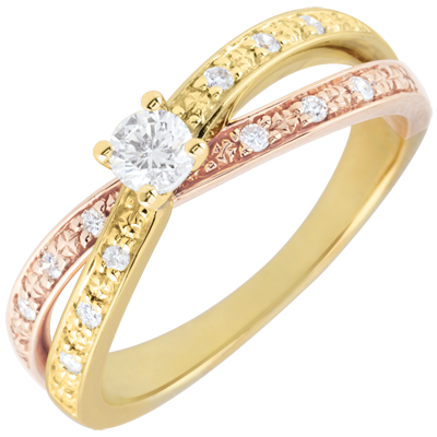 Solitärring Saturnduett Diamantdoppel - Rot- und Gelbgold - 0.15 Karat