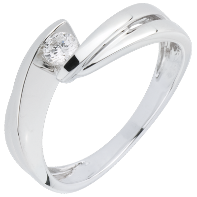 Ein sich elegant windender Weissgoldring gipfelt in einem edlen Solitär-Diamanten.