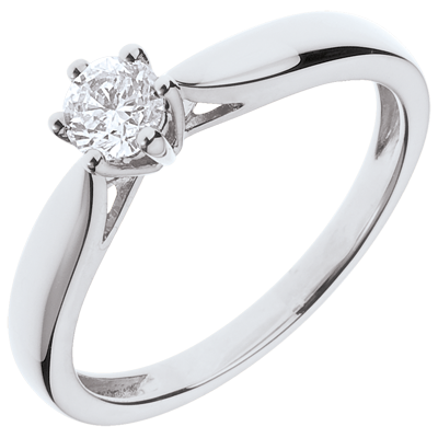 Ein zarter Weißgoldring mit einer angeschrägten Fassung, gekrönt von einem fein eingefassten Solitärdiamanten. Weißgold (750/-): 2.2 g. Labordiamant : 1 - Total: 0.305 Karat Weitere Abmessungen