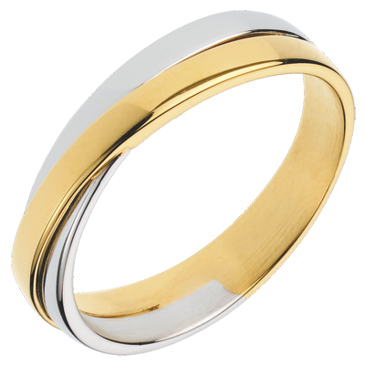 Zwei Ringe in Weiß- und Gelbgold haben sich vereint, um bis in die Ewigkeit an Ihrem Finger zu verweilen.