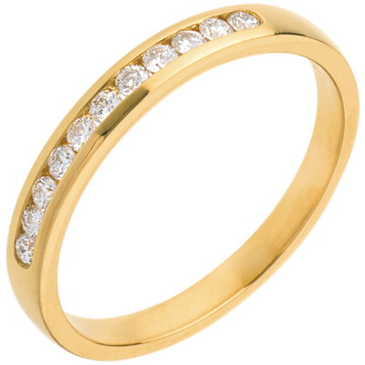 Trauring zur Hälfte mit Diamanten besetzt in Gelbgold - Kanalfassung - 11 Diamanten