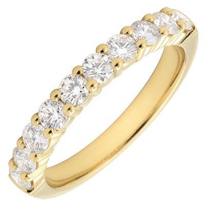 Trauring semi pavé in Gelbgold - Krappenfassung - 0.65 Karat - 10 Diamanten