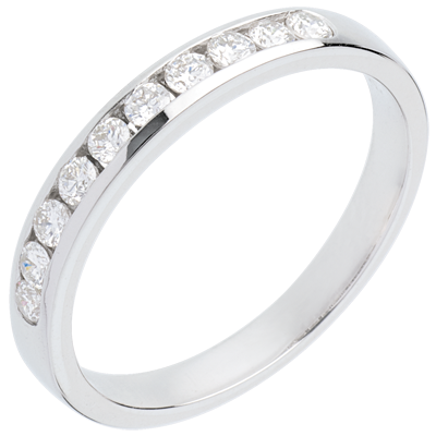 Trauring zur Hälfte mit Diamanten besetzt in Weissgold - Kanalfassung - 0.3 Karat - 10 Diamanten