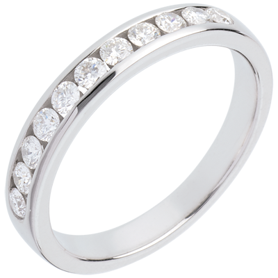 Trauring zur Hälfte mit Diamanten besetzt in Weissgold - Kanalfassung - 0.4 Karat - 11 Diamanten